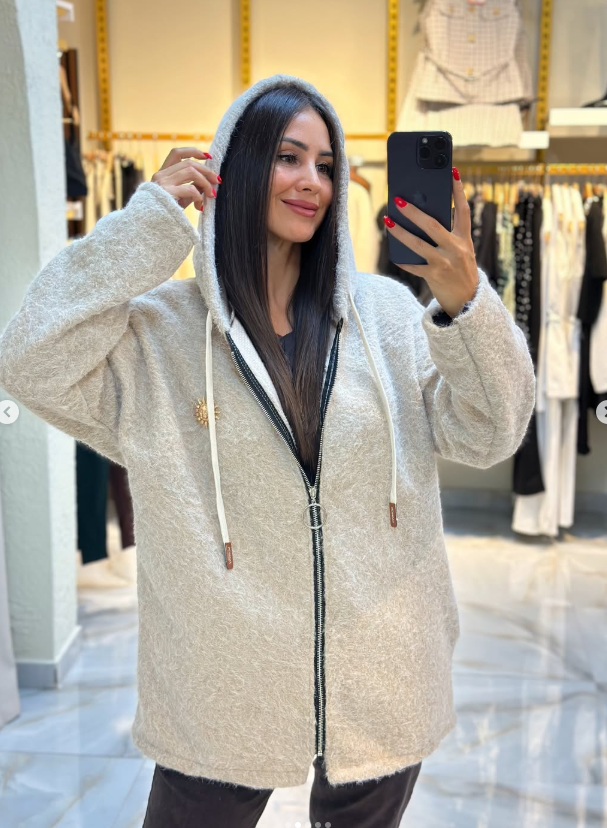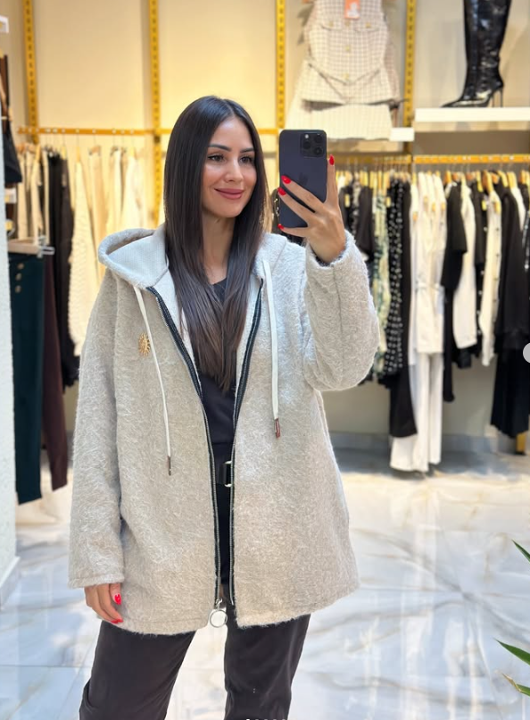 gün boyu konforu ve şıklığı bir arada sunan ithal kapüşonlu fermuarlı kaban