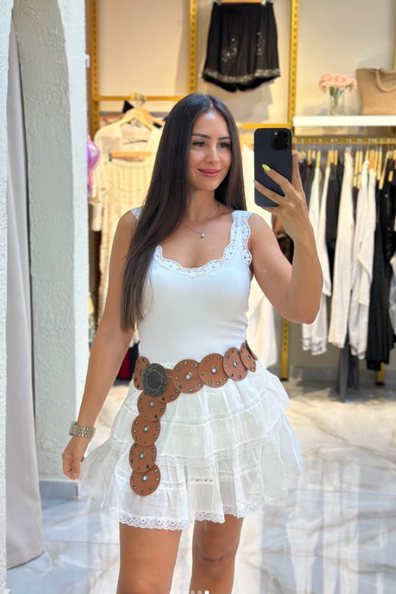 Kat kat dantel detaylı beyaz etekle hem şık hem zarif ol