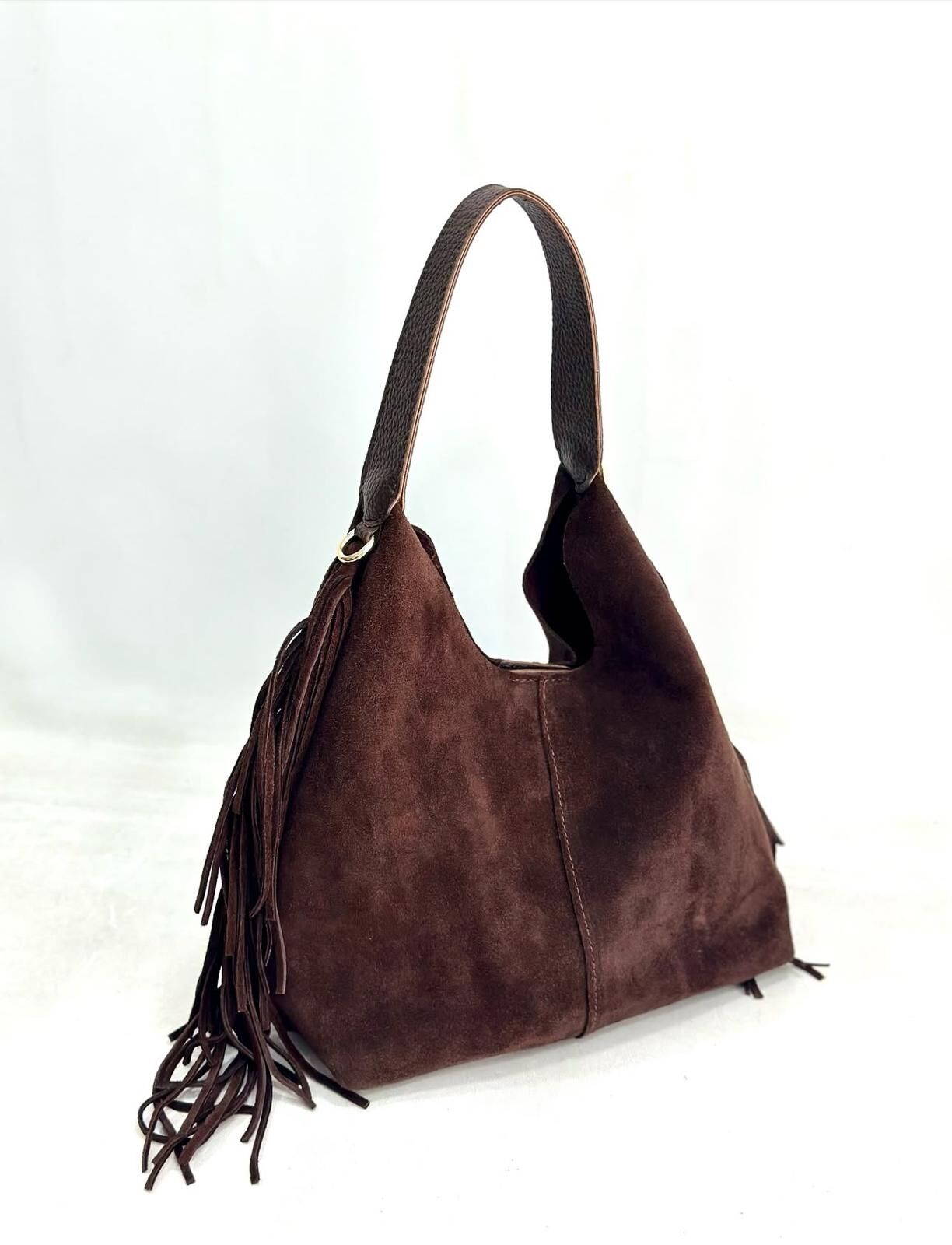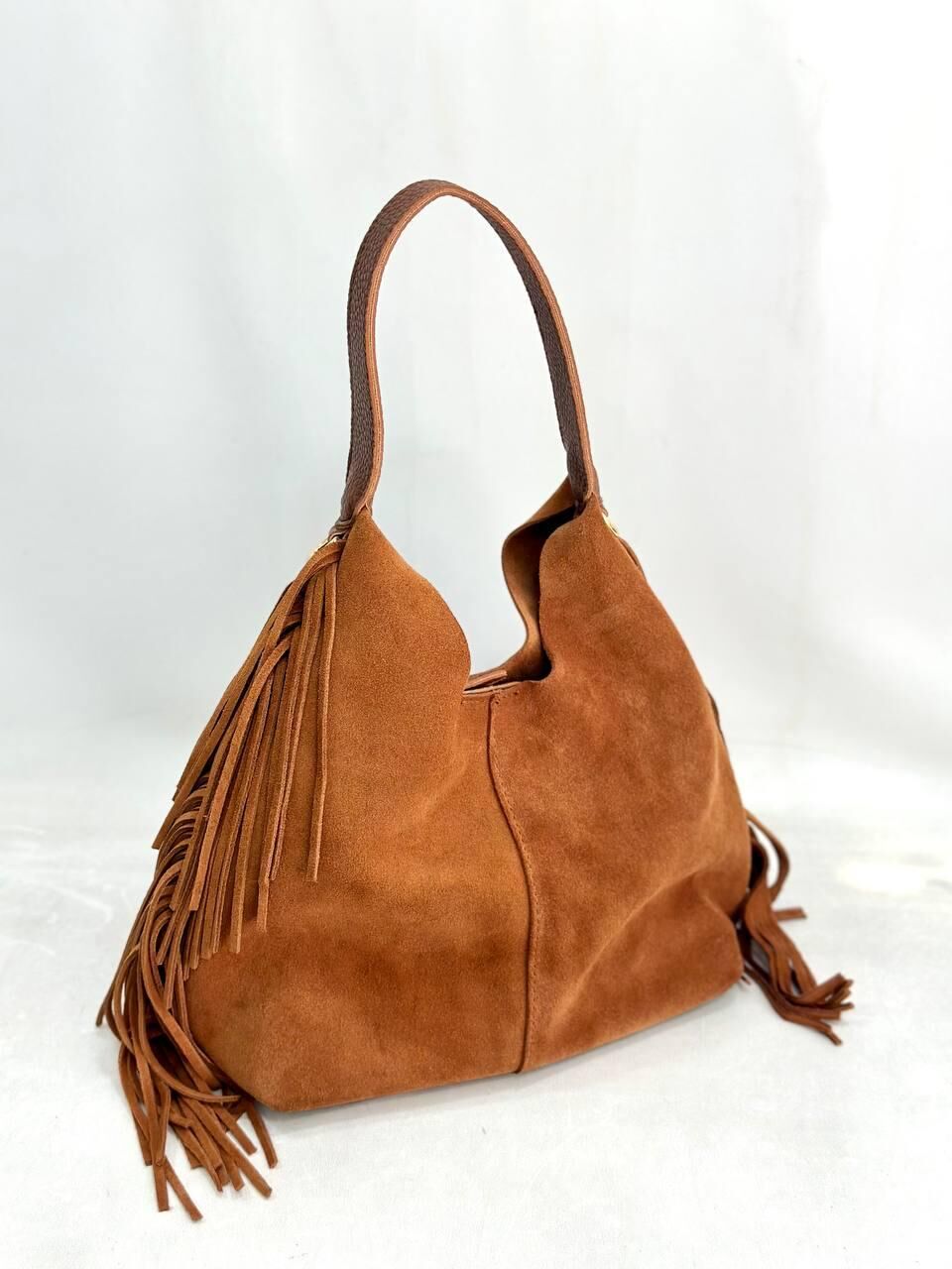 Hakiki Süet Deri Püsküllü Çanta