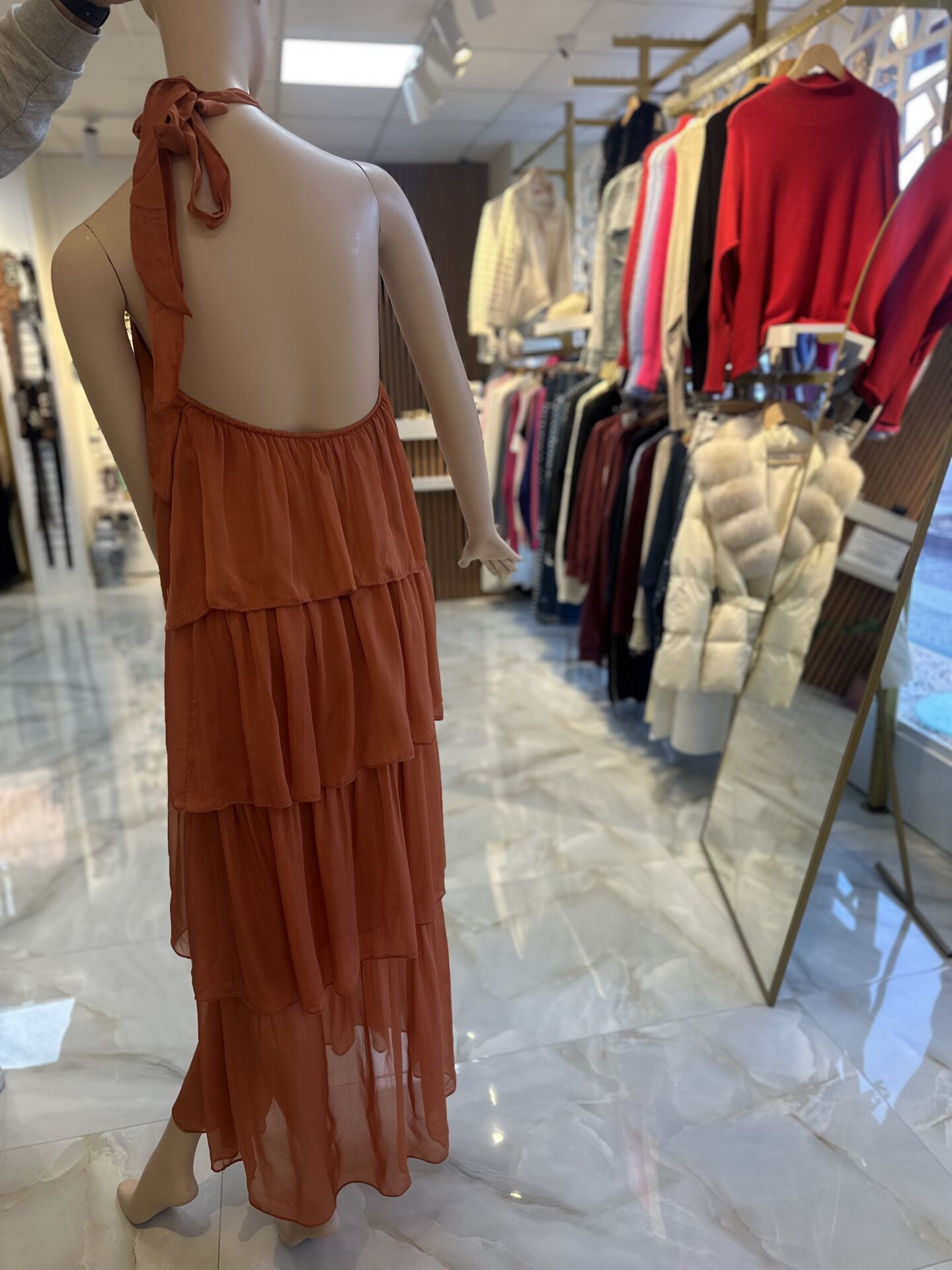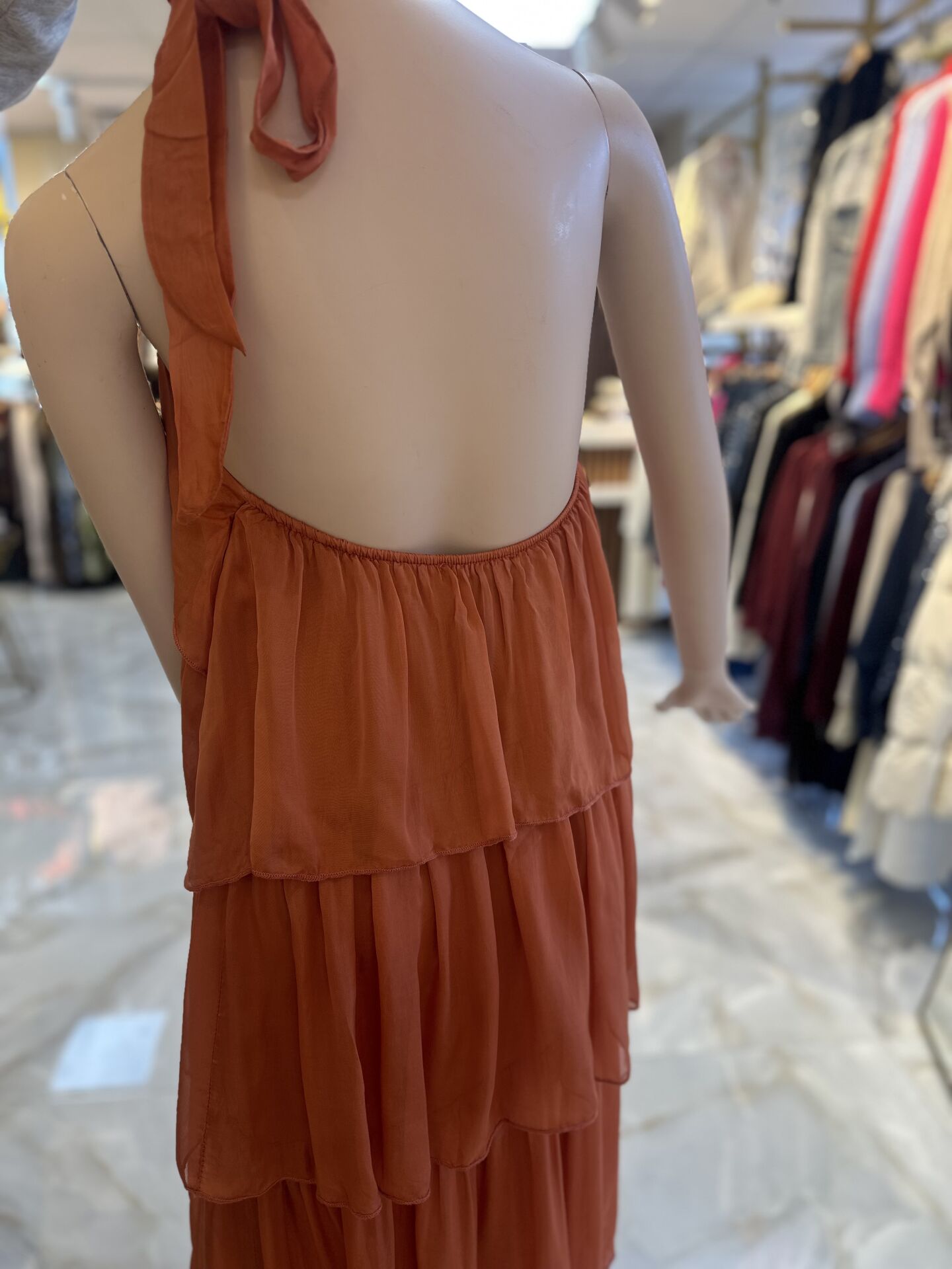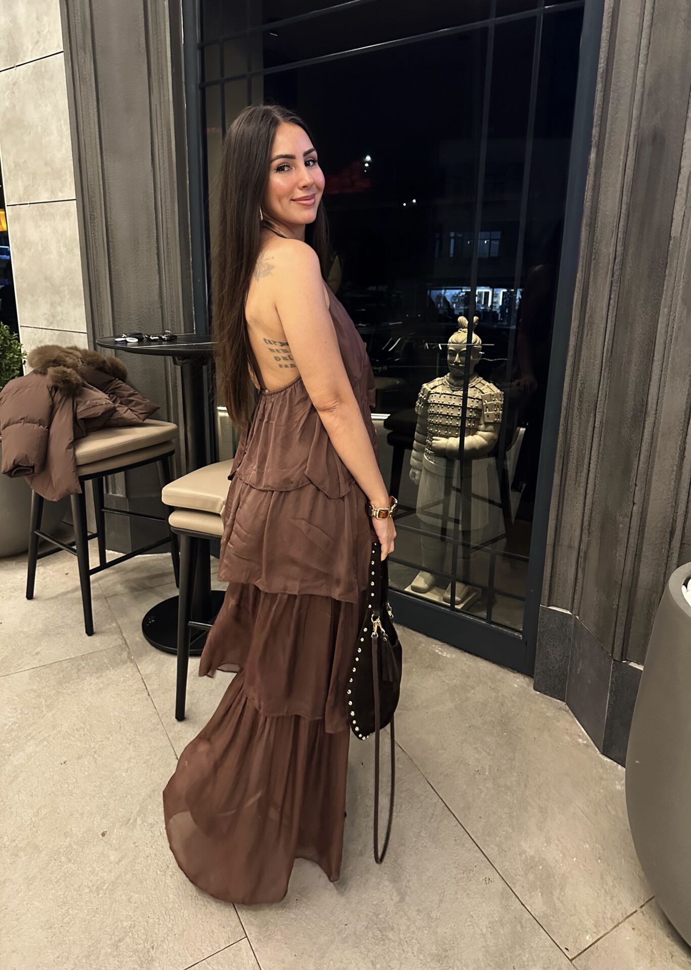 İpek sırtı açık elbise