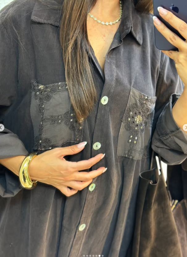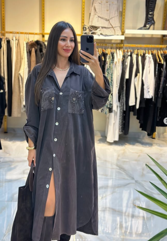Yumuşacık kadife dokusu ve ceplerindeki taş işlemeleriyle hem zarif hem de rahat bir görünüm sunuyor.