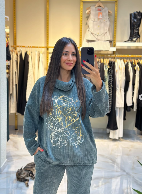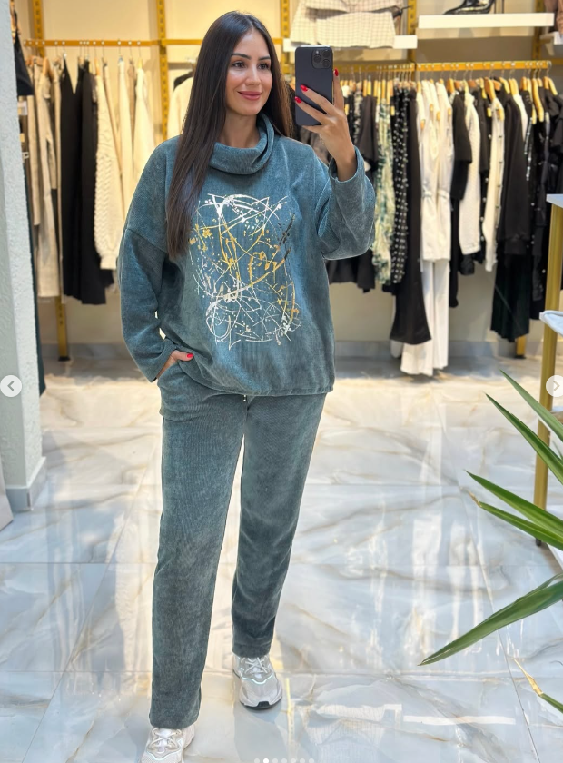 Yumuşacık dokusu, likralı konforu ve zarif şal yakasıyla fark yaratan bu ithal kadife takım,