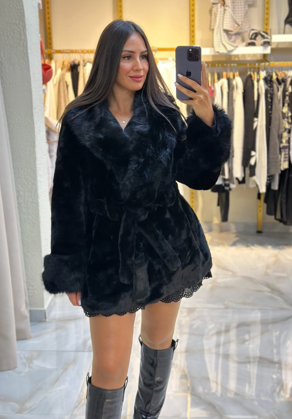 İthal kürk detaylı montumuzla bu kış hem sıcak hem zarif görün
