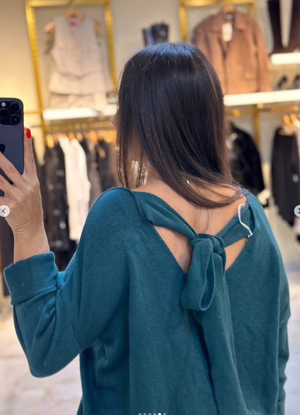 Yeni Sezon ithal Tasarım Triko – Sırtı Fiyonk Bağlama Detaylı
