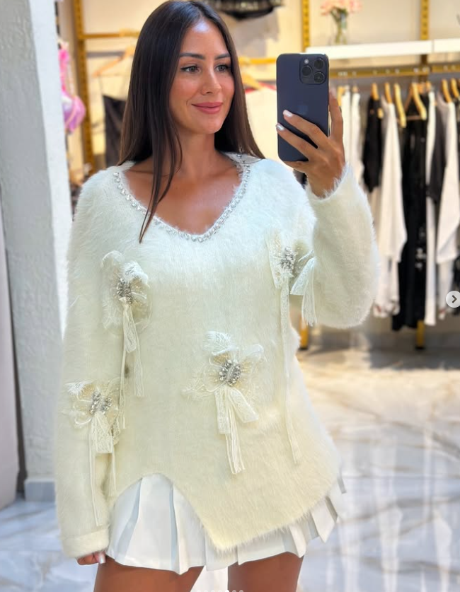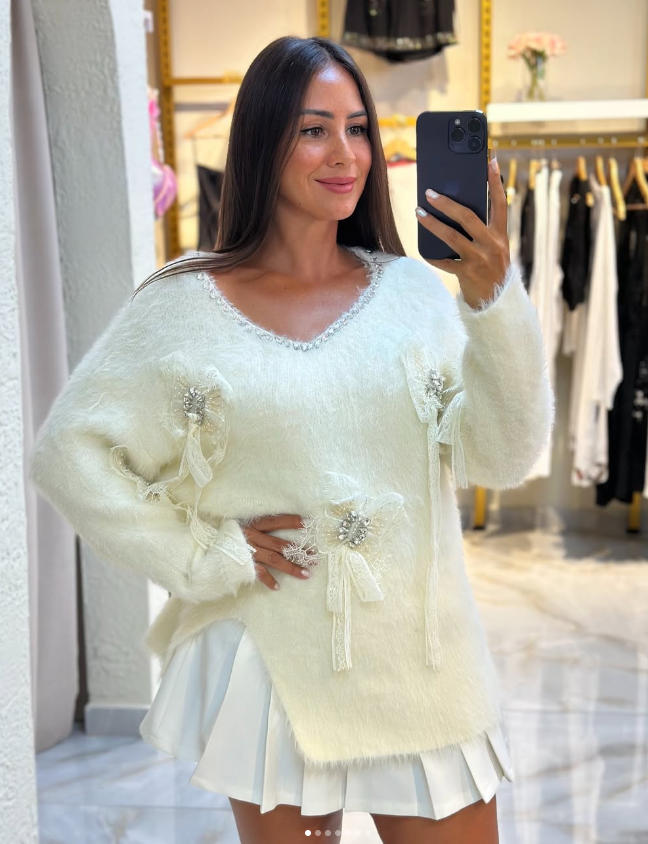 Şıklığı ve zarafeti aynı anda sunan bu özel kazak, detaylarıyla fark yaratıyor.