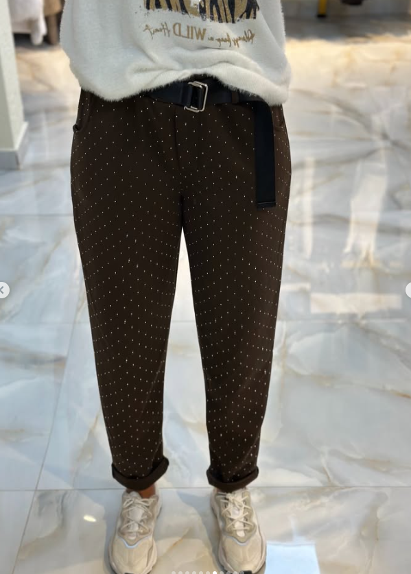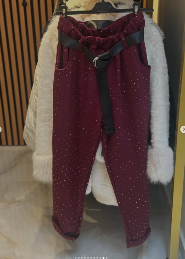 İthal Taşlı Kemerli Pantolon