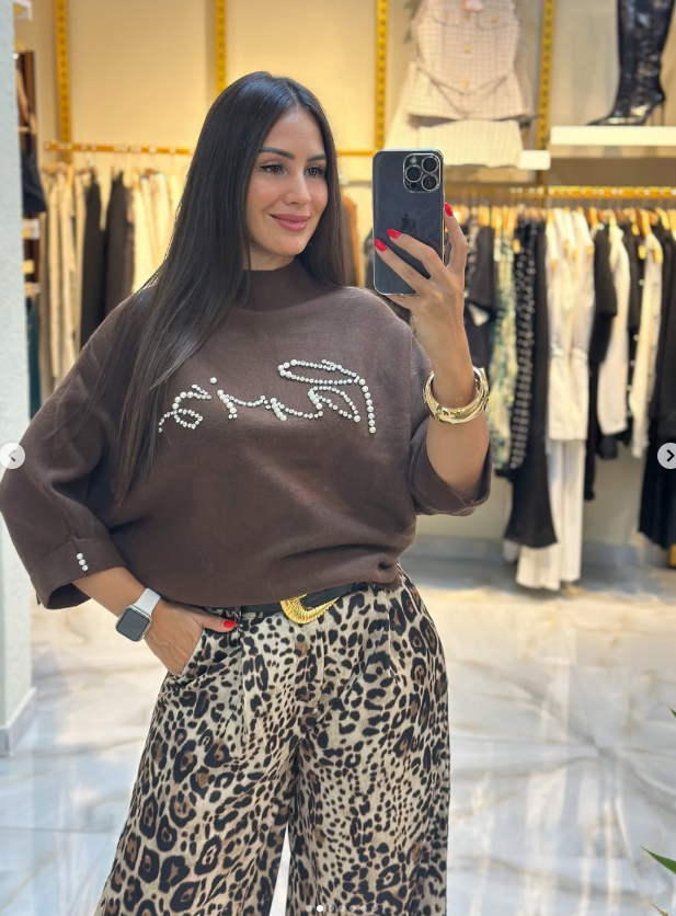 Satenin zarif parıltısı, leopar desenin enerjisi ve ithal siyah kazakla gelen doğal şıklık…