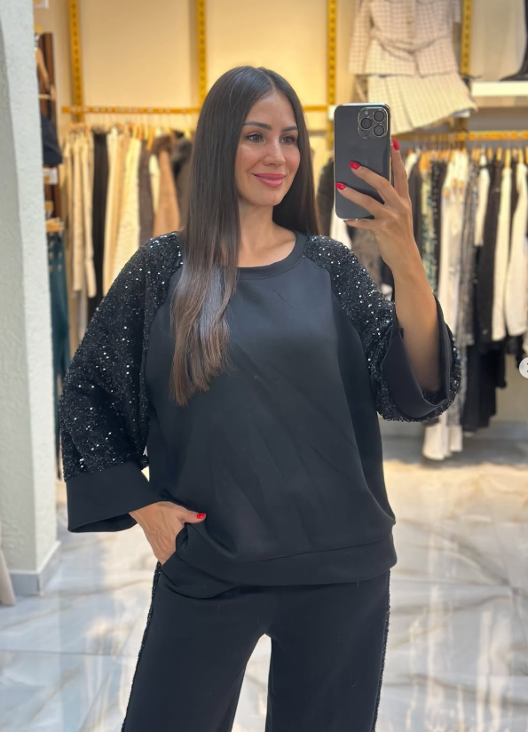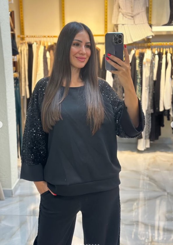 Kol ve yan şeritlerindeki payet detaylarıyla hem günlük şıklık hem de özel gün rahatlığı sunar. Modal kumaşın yumuşak dokusu ile tüm gün konforlu hissedersiniz.