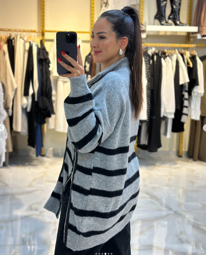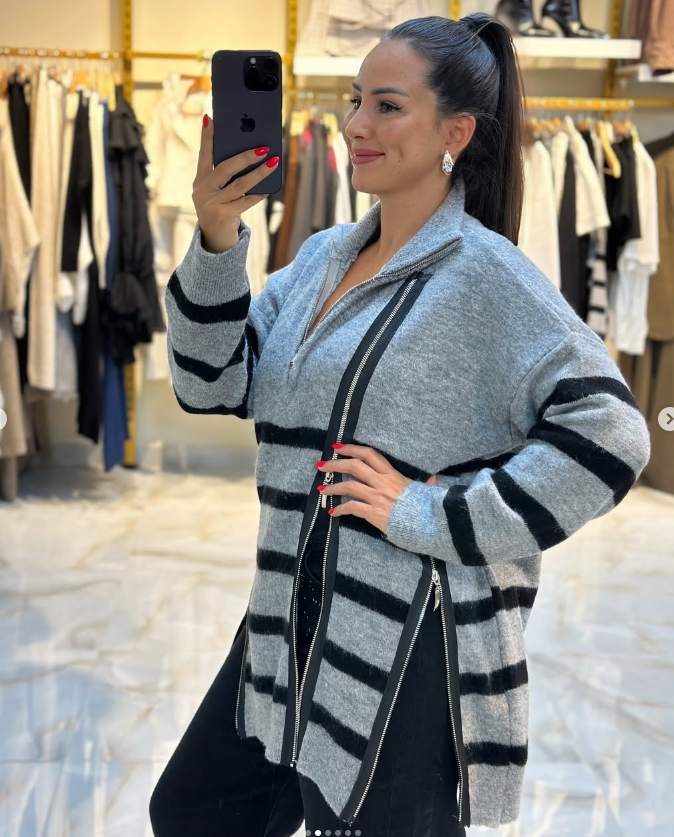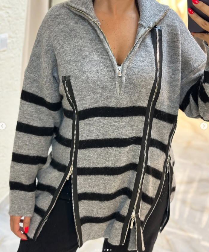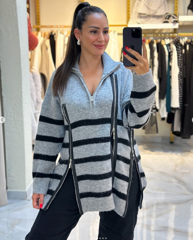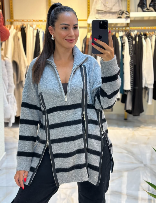 Fermuar detaylı tasarım kazak, konforu ve şıklığı bir araya getiriyor.