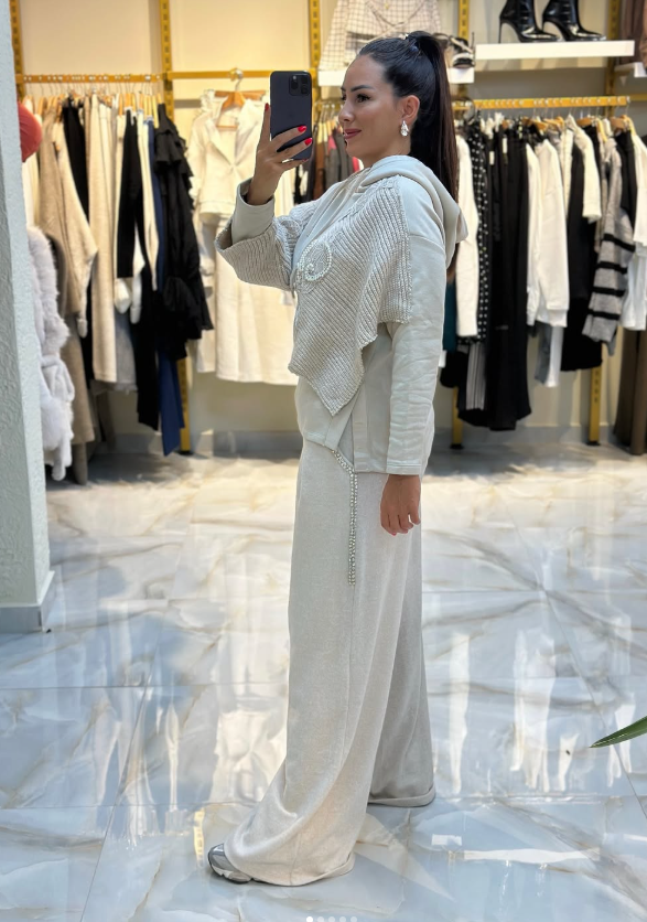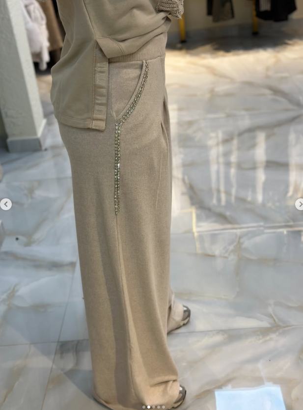 tasarım triko pantolon, spor şıklığı zarafetle buluşturuyor.