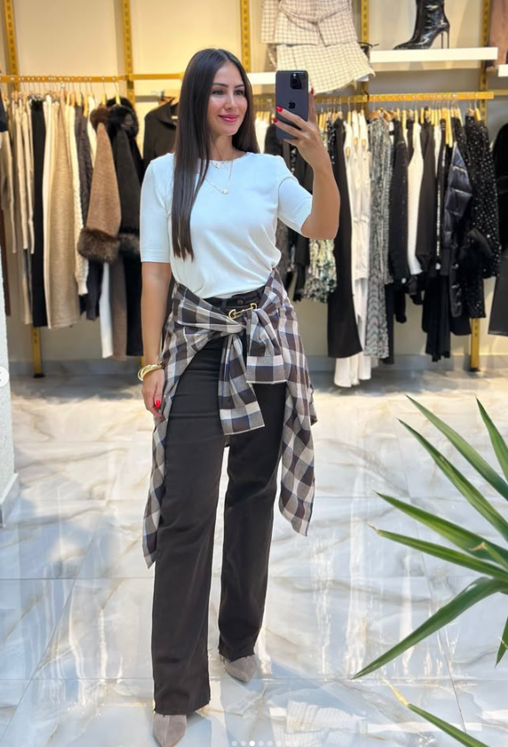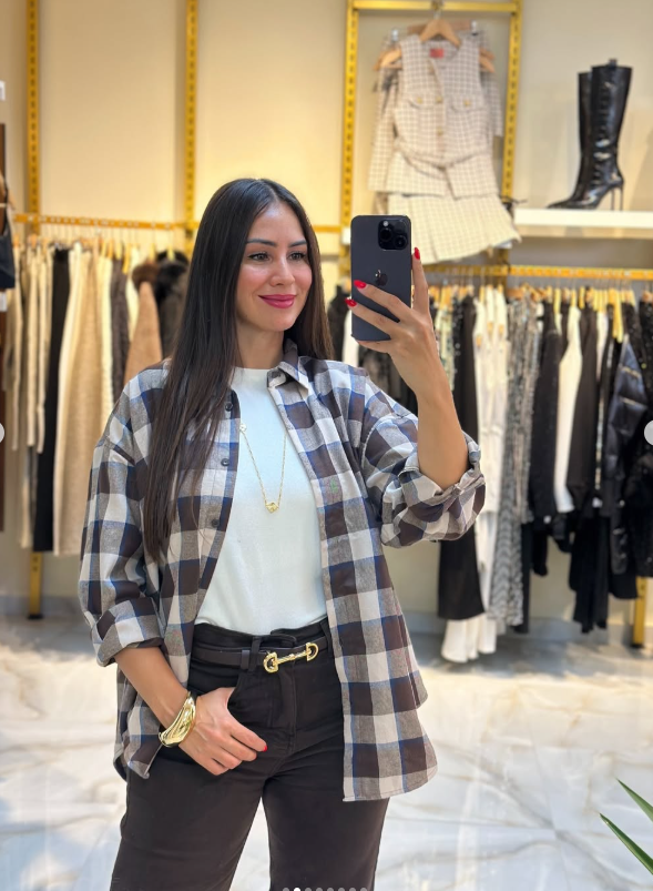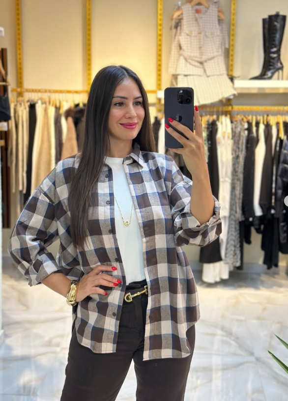Yumuşak dokulu gömleğimiz, kahverengi jean ile birlikte hem casual hem de modern bir tarz yaratıyor.